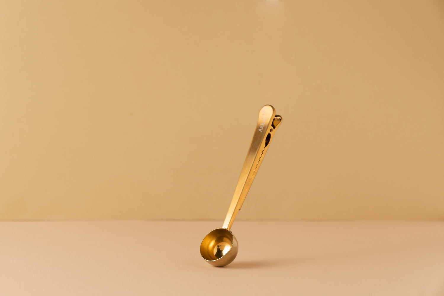 ملعقة قياس القهوة 2 في 1 مع مشبك – متوفرة بلونين ذهبي وفضي